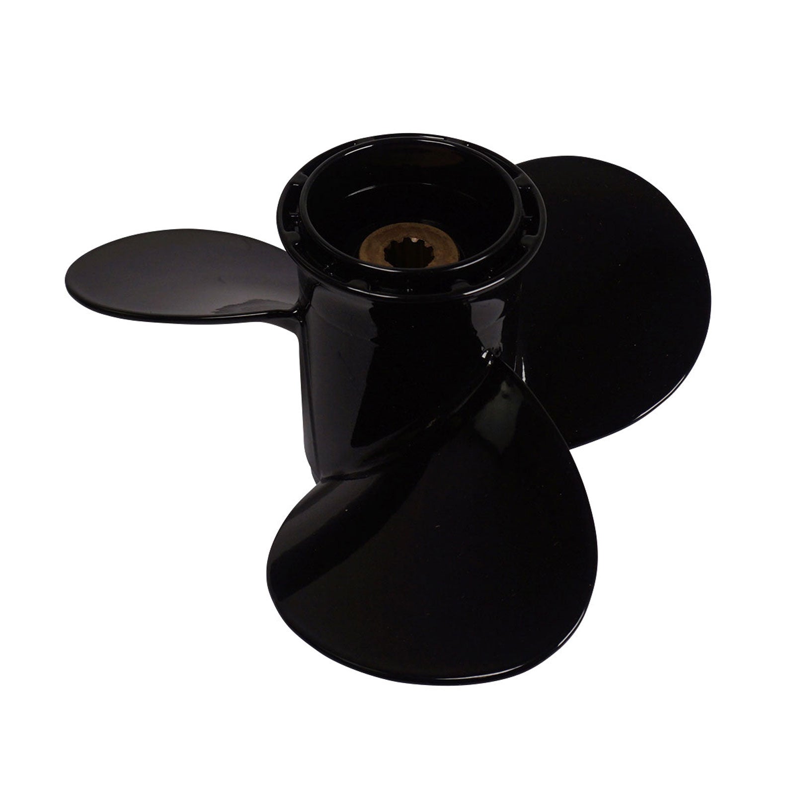 Die schwarze Glanz Oberfläche ist korrosionsbeständig und langlebig – ideal für Süß- und Salzwasser. Der Propeller besitzt 3 Blätter, eine rechte Drehrichtung und eine Nabenaufnahme mit 10 Zähnen.