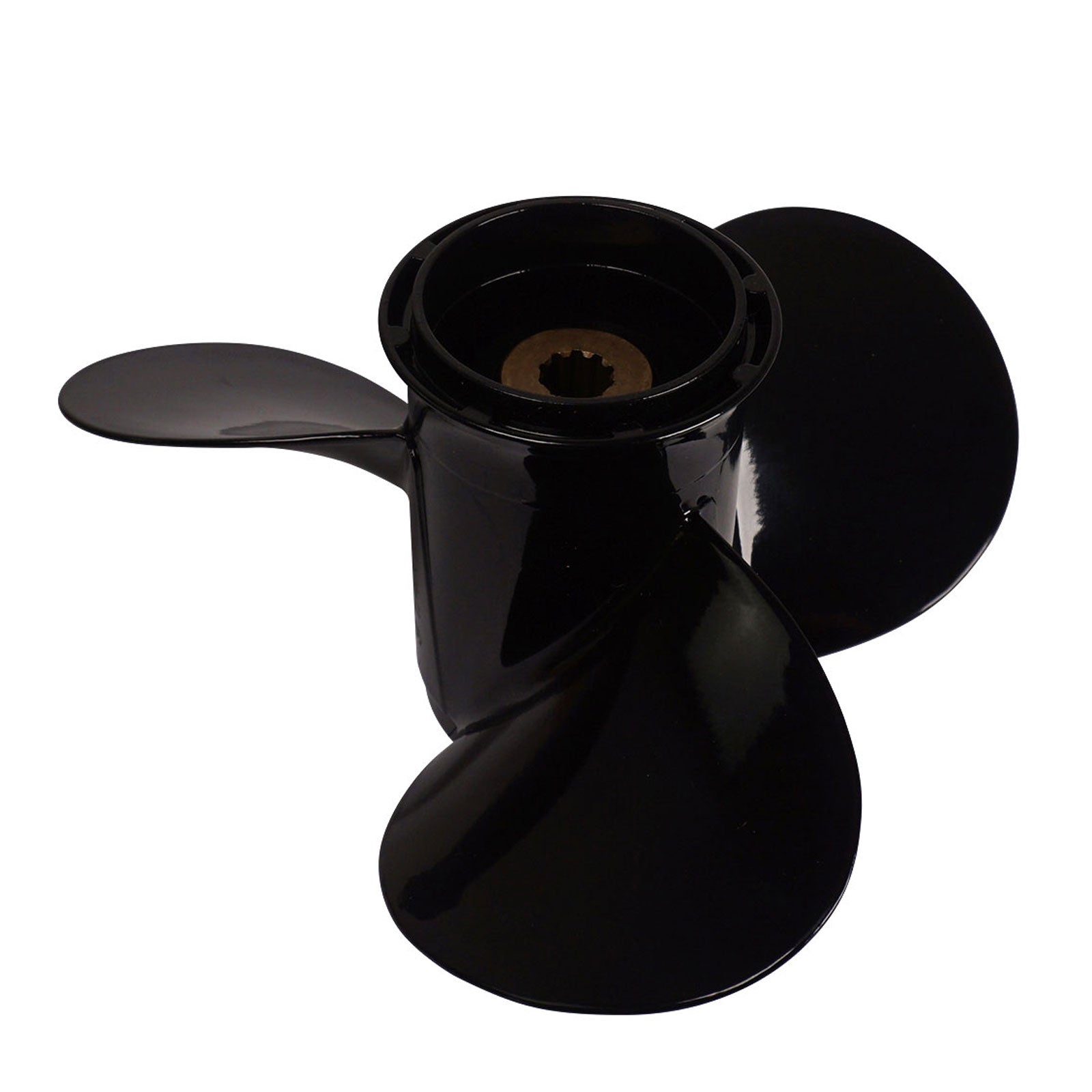 Die schwarze Glanz Oberfläche ist korrosionsbeständig und langlebig – ideal für Süß- und Salzwasser. Der Propeller besitzt 3 Blätter, eine rechte Drehrichtung und eine Nabenaufnahme mit 10 Zähnen.