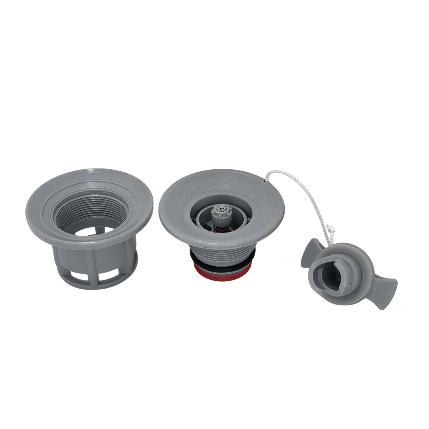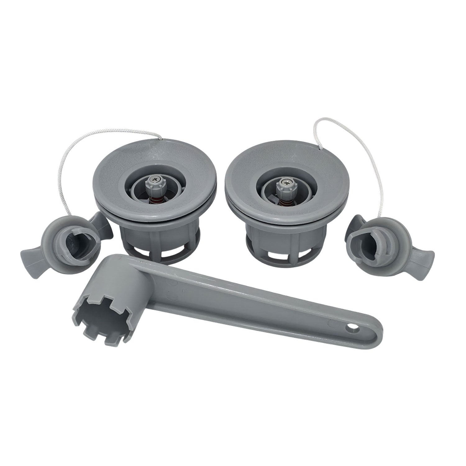 Setangebot 2x Schlauchbootventil HR-Ventil + Ventilschlüssel – Komplettset für Schlauchboote (8-Zahn, Grau)