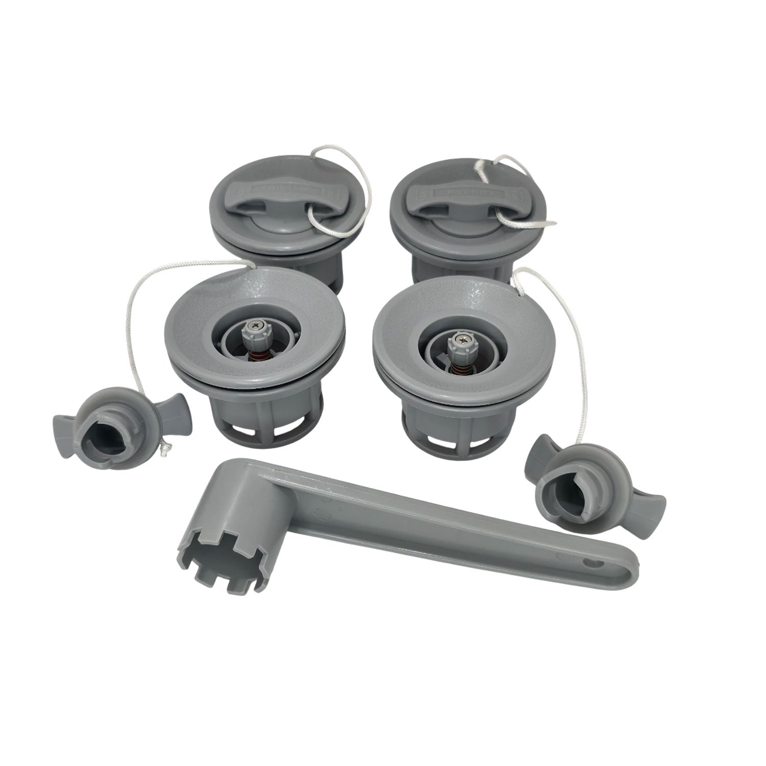 Setangebot 4x Schlauchbootventil HR-Ventil + Ventilschlüssel – Komplettset für Schlauchboote (8-Zahn, Grau)